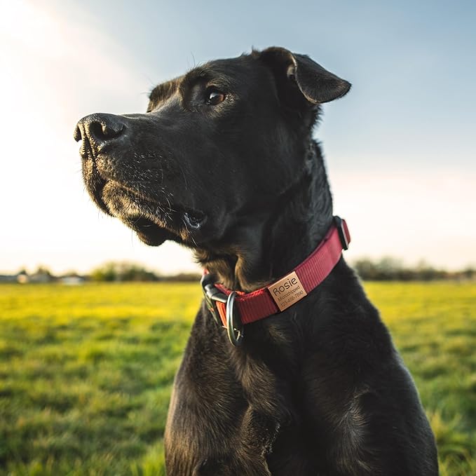 - Cute Font Design Silent Pet ID Tags - A well-designed cute fashion name tag for your beloved dog, cat, or other pets. No Jingling fabric band that is safe and soft. laser engraved stainless steel pet tags with your pet's name and contact information. Handmade with love.