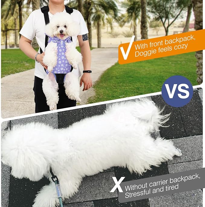 - Two Ways of Wearing: A hands-free pet carrier can be worn on your front side or your backside if you like, it keeps you closer and increases pet's sense of security when you carry your cat or dog around. Meanwhile, the thickened sponge pad helps to relieve the burden of your shoulder.