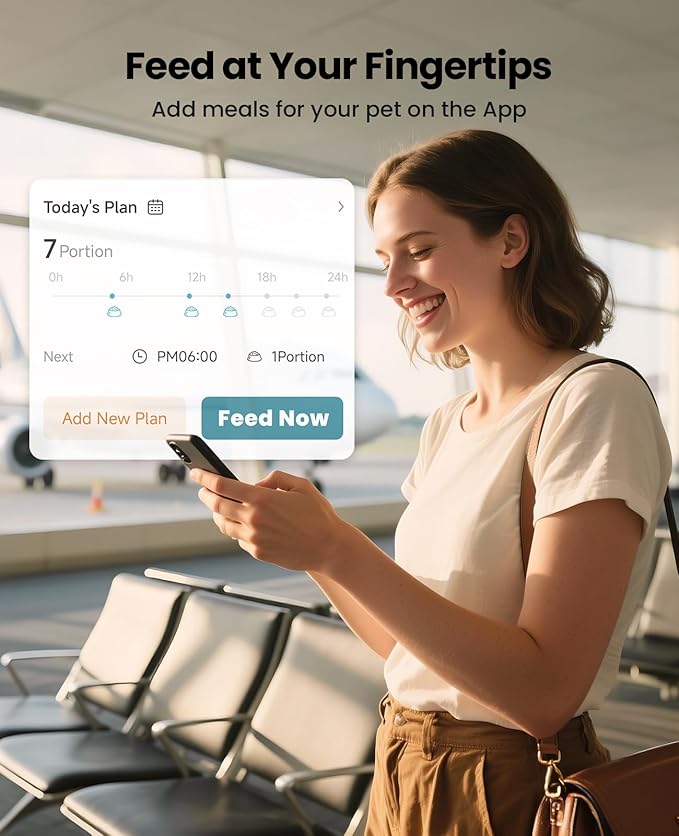 - Smart App Control: Program up to 10 daily meals (1-12 portions each) remotely via 2.4GHz WiFi from anywhere at any time. Monitor your pet's feeding patterns through the iOS/Android app to prevent overeating and maintain healthy eating habits