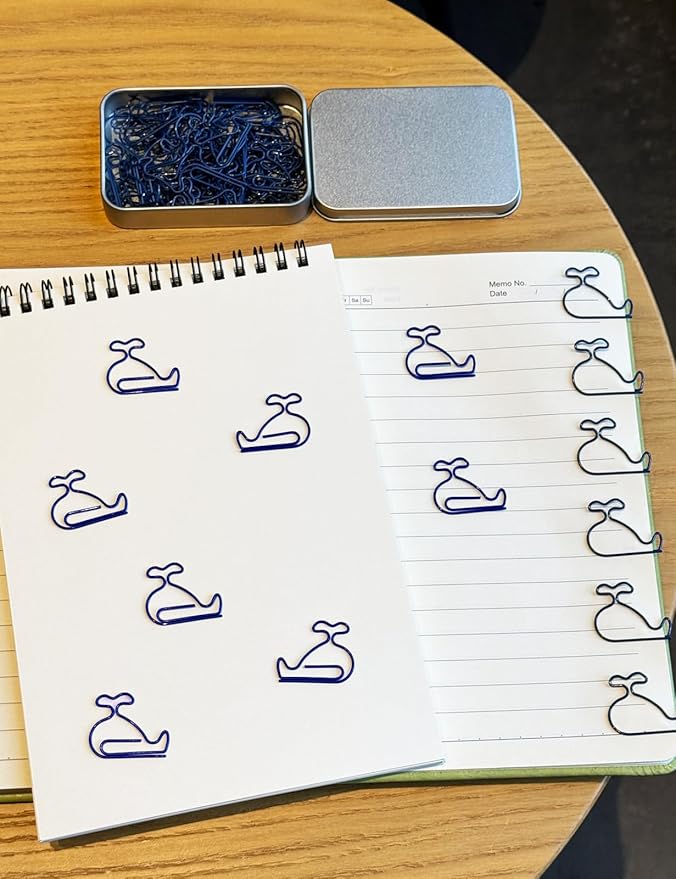 - 【Whale Shaped Paper Clips】Cute whale shaped paper clips with small bookmarks in dark blue color. Cute design with shiny appearance, add a lot of fun to your life.