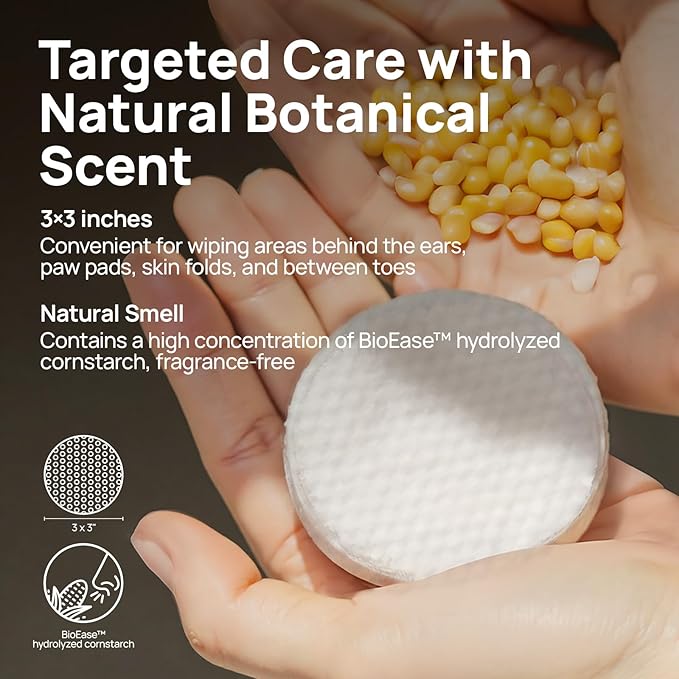 - More Powerful Formula for Root-Level Itch Relief: Itch relief for dogs contain a high concentration of BioEase hydrolyzed cornstarch, which penetrates deeply and offers natural anti-allergic properties for fast and long-lasting itch relief. It effectively inhibits the release of itch factors, addressing itching at its source. Due to its high concentration and absence of artificial fragrances, the wipes have a strong natural plant scent — a true sign of the potency of natural ingredients