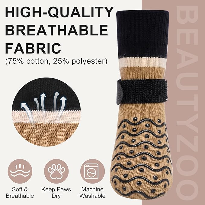 - PROTECTION FOR ACTIVE PAWS: Prepare your dog for every season with BEAUTYZOO Dog Socks! These versatile paw protectors for dogs are great for both indoor and outdoor use. Whether it's hot pavement in the summer or icy ground in the winter, they protect paws from sharp objects, cold surfaces and harsh weather conditions. They also prevent furniture scratches, keep paws clean from dirt and protect your floors from damage. Perfect for small dogs or larger breeds that love to play all year long