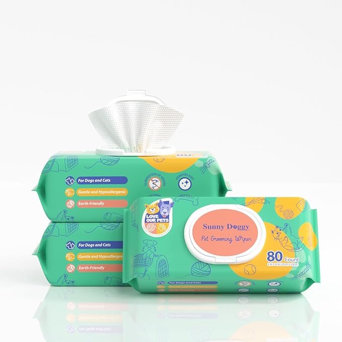 - PET WIPES FOR DOGS AND CATS: Sunny Doggy Pet Wipes are the ones that not only deodorize effectively, but also clean stains from your pet quickly and easily. The pet cleaning wipes can be used on your pet's butt, paws, ears, fur and around the eyes. Very gentle on pets.