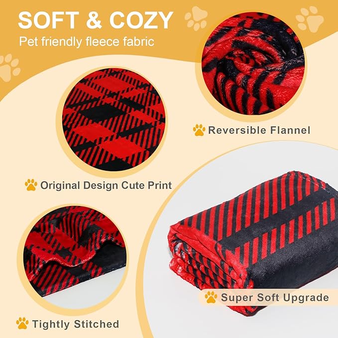 Premium Soft Dog Blanket Washable,43"x30" Cat Blanket for Indoor Cats Large Medium Small Dog Gifts Puppy Essentials (Red/Black)