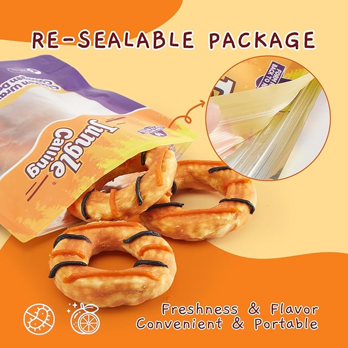 Jungle Calling Dog Treats, Long Lasting Collagen Chews for Dogs, Chicken Wrapped Collagen Donuts, High Protein Rawhide Alternative Chewy Snacks for Medium and Large Dogs (4 Counts)