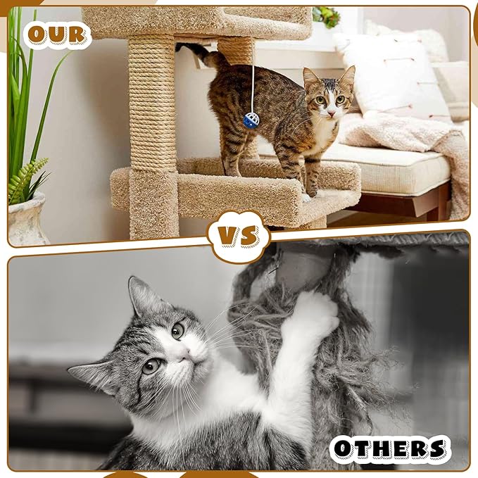 - Enough Length: you will receive 1 roll of sisal rope and 4 cat toys (random color). The sisal rope is about 164 feet (50 m) in length and 1/4 inches (6 mm) thick, which can be used for wrapping cat trees, cat scratching posts or DIY craft projects. Sisal rope is braided from 4 strands of small sisal rope, which has a high density, high tensile strength and good abrasion resistance to withstand the relentless scratching and climbing of cats and meet the needs of energetic cats