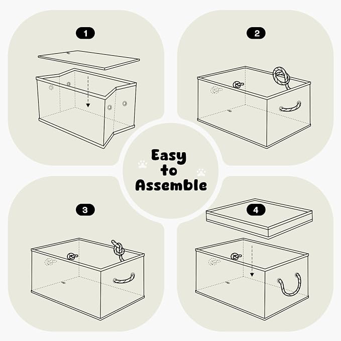 - EASY TO ASSEMBLE: The space-saving design of this large dog toy basket allows them to be easily folded flat when not in use. They are sturdy enough to maintain their shape or stand against the wall, making them ideal for use in the bedroom, living room, Pantry, Hallway, and more.