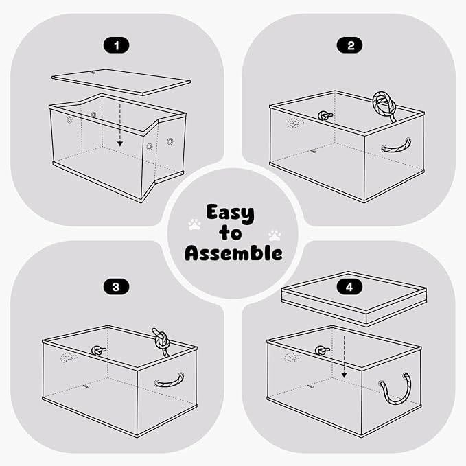 - EASY TO ASSEMBLE: The space-saving design of this large dog toy basket allows them to be easily folded flat when not in use. They are sturdy enough to maintain their shape or stand against the wall, making them ideal for use in the bedroom, living room, Pantry, Hallway, and more.