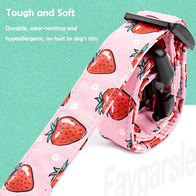Faygarsle Pink Strawberry Pattern Cotton Dog Collar for Small, Medium, Large Boys Girls Dogs L