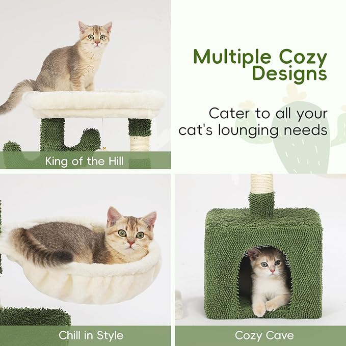 Hoopet 32-Inch Small Cat Tree for Indoor Cats, Cactus Cat Tower with Sisal Scratching Posts, Cozy Condo, Plush Perch, and Hanging Ball, Ideal for Kittens & Small Cats