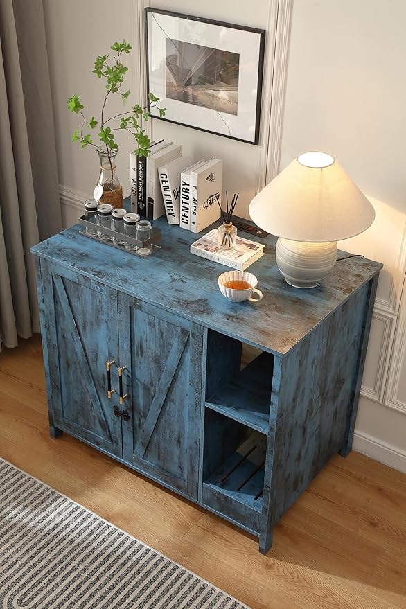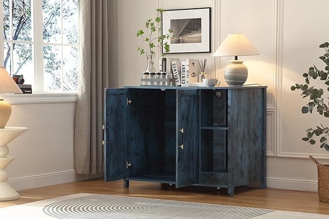 Large Cat Litter Enclosure With Litter Collector, Enclosure for self-Cleaning Litter Boxes,Adjustable Shelf for Dog Proof and Storage,charging station,Locks Added for cat,Cat House,Blue