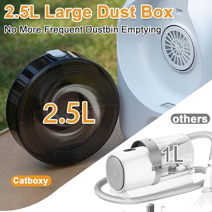 - MULTIPLE ATTACHMENTS: The all-in-one design eliminates the need for separate storage. This kit includes a 3-in-1 cleaning/drying/trimming attachment and 4 adjustable trimming combs, allowing precise fur customization for any breed or coat type. The built-in vacuum instantly captures trimmed hair, delivering salon-quality grooming at home.