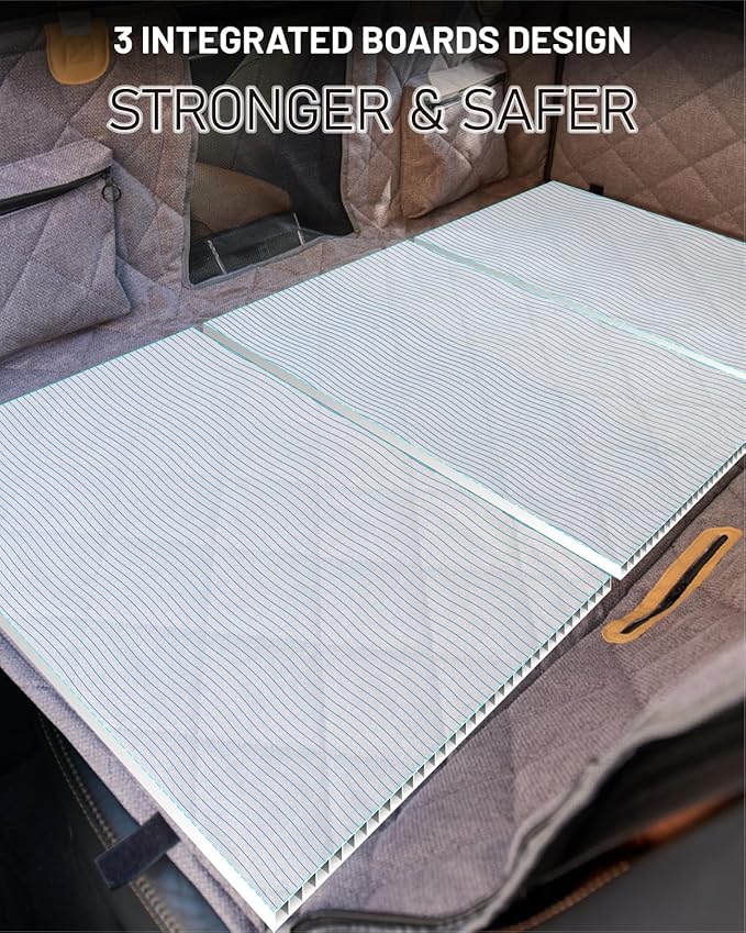 - Waterproof, Scratch-resistant & Non-slip: Constructed with 10-layer materials including PVC coating, TPU and 210T polyester, this dog back seat extender resists spills and wear. The 8mm high-density sponge and S-patterned board ensure stability, while the polyester linen-textured surface provides grip and scratch resistance.