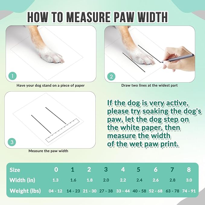 - 【Size Option】Optimal Fit with 9 Size Options. Our size is based on the inner diameter of the boots for dogs, please be sure to measure the width of your dog's paws carefully cause it is the key to choose the correct size for your dog. You can refer to the size chart to select the appropriate size for your dog to obtain the most comfortable fit.