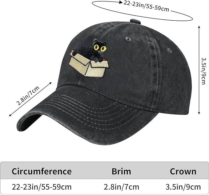 Black Cat Hat,Ragdoll Cat Embroidered Adjustable Cotton Baseball Cap for Men Women,Gifts for Cat Lovers