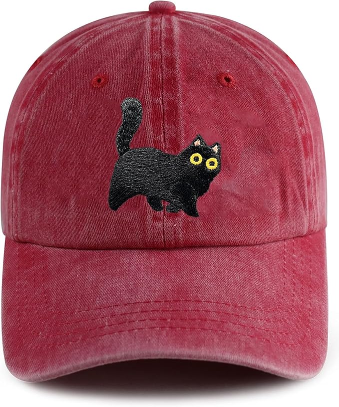 Black Cat Hat,Ragdoll Cat Embroidered Adjustable Cotton Baseball Cap for Men Women,Gifts for Cat Lovers