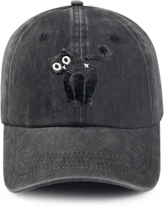 Black Cat Hat,Ragdoll Cat Embroidered Adjustable Cotton Baseball Cap for Men Women,Gifts for Cat Lovers