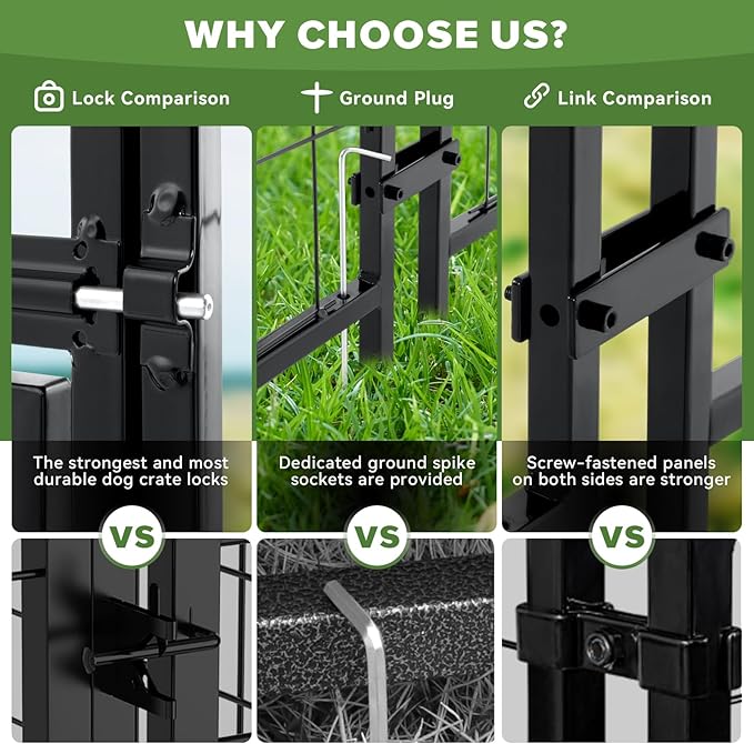 - STABLE AND SAFE DOOR LOCK DESIGN: Our door locks are different from other similar dog crates. The door lock uses the safest and most stable switching method. Ensuring that your pet cannot escape, it can protect your pet from predators and other dangers.
