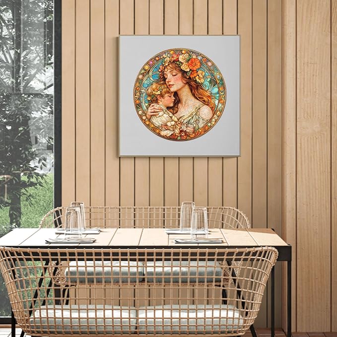 Jigfoxy Wooden Puzzle for Adults, Mom Mary Jigsaw Puzzles for Adult, Unique Animal Shape Wood Cut Puzzles, Christmas Thanksgiving Gifts for Friends Family (L-13.4 * 13.4in-300pcs)