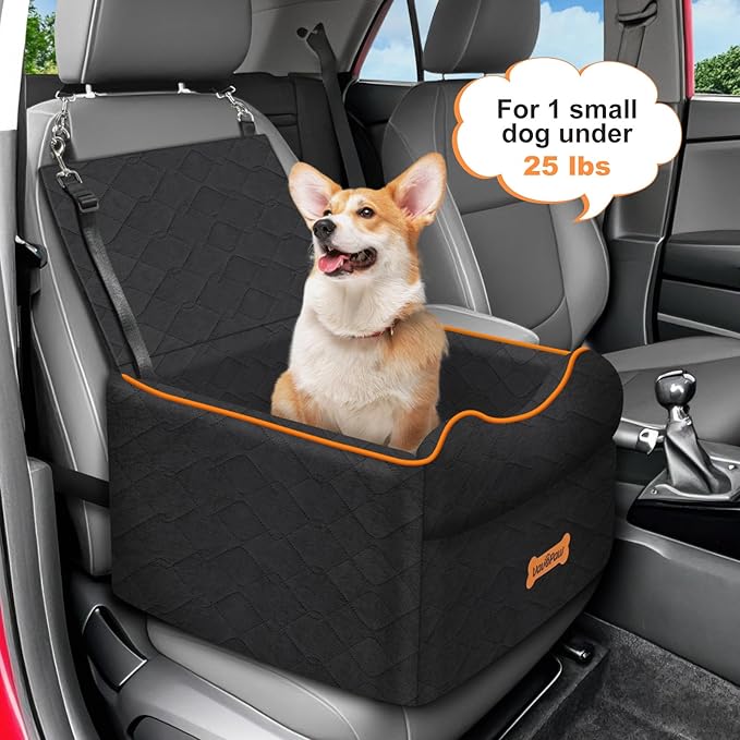 Small Dog Car Seat, Waterproof Dog Booster Seat with Thick Cushion & Safety Leash, Removable Car Back Seat Bed for 1 Small Dogs Under 25lbs, Pet Car Seat for Travel, Black