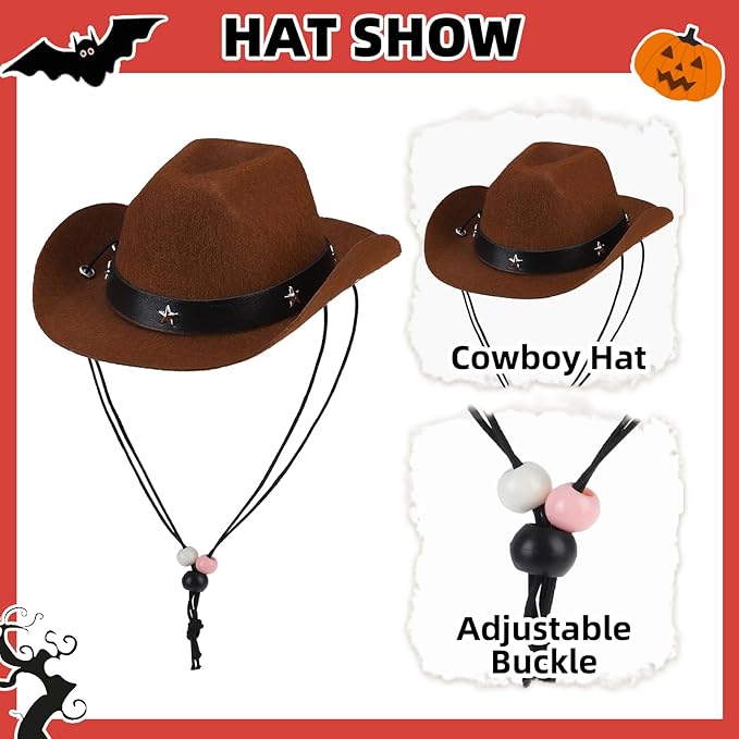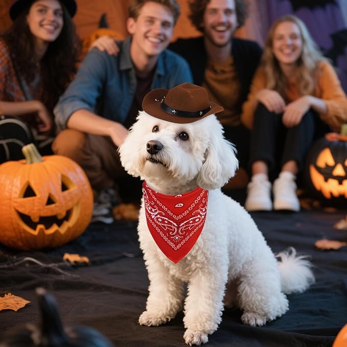 PUPTECK Paisley Dog Bandana Outfit Scarf with Cute Doggy Cowboy Hat, Halloween Costume Decorations Supplies for Small Medium Large Dogs Boy Girl Gifts, Brown & Red