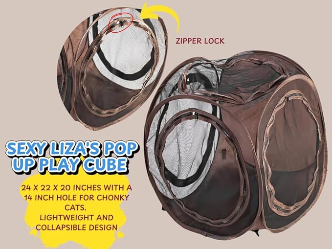 Sexy Liza’s Pop Up Tent Cat Cube - 24x22x20” Play Tent w/ 14” Hole - Connects with Snarky Pets Timmy & Mister’s Tunnel - Outdoor Cat Tent, Play Pen, Zip Connect, Outdoor cat House or Small Dog Bed