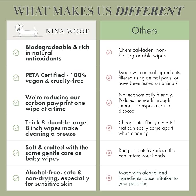 - BIODEGRADABLE, PLANT-BASED: Our 100% biodegradable, plant-based wipes are a tangible commitment to reducing the environmental impact. Reduce your carbon footprint with eco-conscious and sustainable pet products, suitable for all dogs.