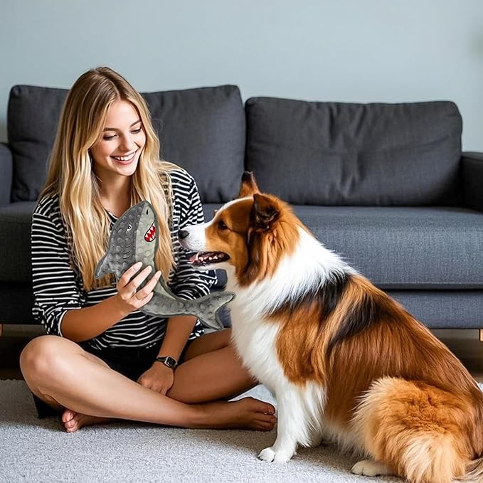 - Cute Gray Shark no stuffed dog toys:No-Stuffing, Durable Chew Toys for Puppies & Adult Dogs This Seahorse dog toy set features high-quality material with no stuffing inside, preventing messy spills when chewed. The non-toxic, pet-safe design ensures worry-free chewing. these toys suit small, medium, and large breeds, providing long-lasting fun for all dogs.