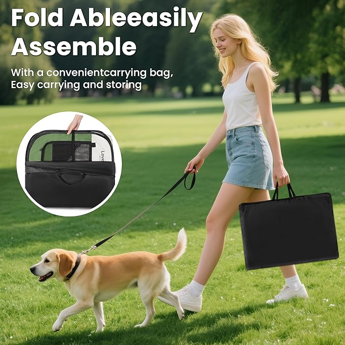 - No Assembly Required and Easy to Store: The Portable Pet Play Pen comes along with a convenient carrying case that can easily store your playpen. It takes seconds to open the dog playpen from folded storage bag, no assembly required. And it's also easy to fold back flat when not in use. Our lightweight portable pet playpen can be used indoors, outdoors, traveling, camping, etc.