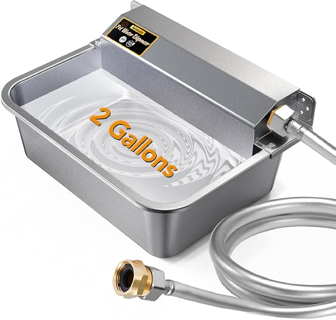 - Premium Materials: Made of food-grade 304 stainless steel, this automatic dog water bowl is built to last. It comes with an upgraded burst-proof hose to resist chewing from playful pets. For long-lasting performance, regular cleaning is recommended to prevent rust
