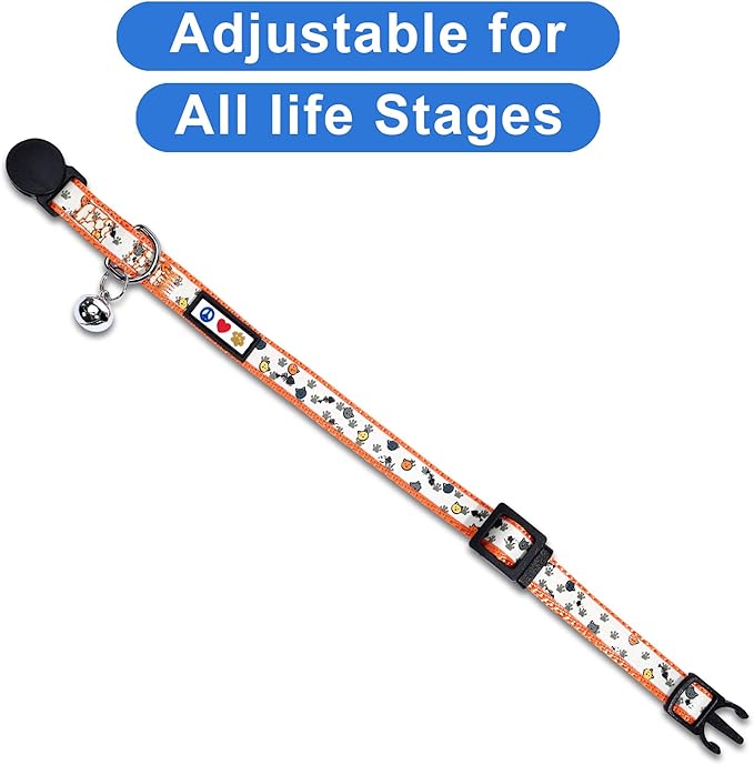 Pawtitas Glow in The Dark Cat Collar with Breakaway Safety Buckle & Bell Adjustable Kitten Collar, Orange