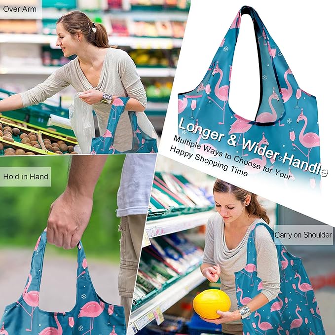 - MULTI-PURPOSE: The reusable grocery bags have long and wide handles, allowing you to hand hold or wear on the shoulder for easier carrying. Both women and men can use these bags to hold groceries for daily use. These storage bags can hold food, fruits, snacks and necessities while travelling or picnicking, birthday party.