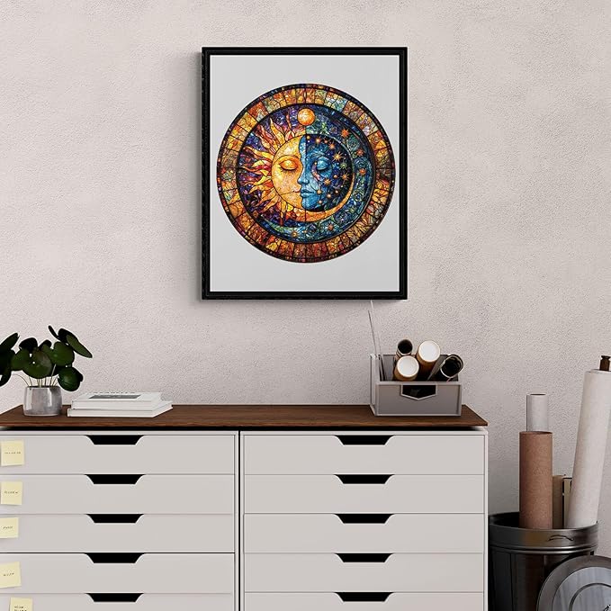 Jigfoxy Wooden Puzzle for Adults, Sun and Moon Jigsaw Puzzles for Adult, Unique Animal Shape Wood Cut Puzzles, Christmas Thanksgiving Gifts for Friends Family (L-13.4 * 13.4in-275pcs)