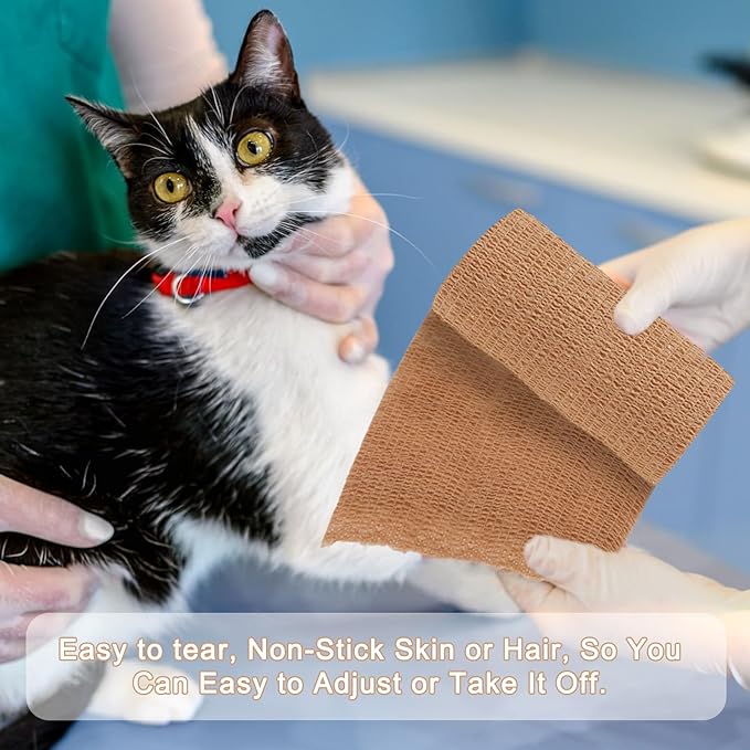 - 【No Residue & Effortless Application】Unlike ordinary tapes, this self-adhesive bandage sticks only to itself, not skin or hair. Easily tear b hand without scissors—perfect for quick fixes during sports, workouts, or pet emergencies. No pins or clips needed!