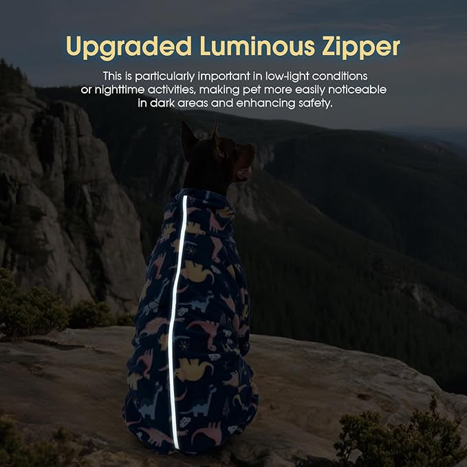 ROZKITCH Dog Winter Coat Soft Fleece Dog Pajamas, Pet Windproof Warm Cold Weather Jacket Vest with Reflective Zipper, Jumpsuit Apparel Outfit Clothes for Medium Dog Dinosaur S