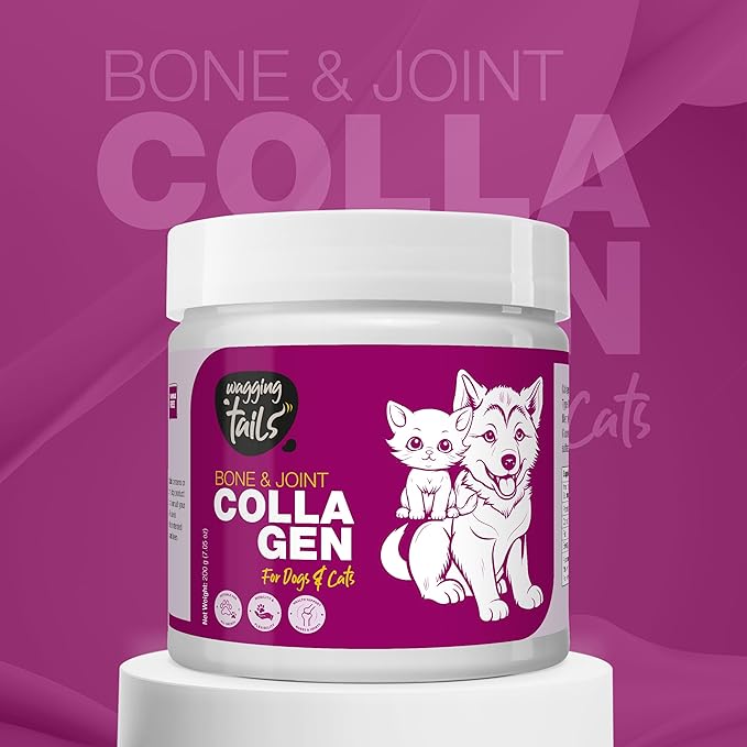 Bone & Joint Collagen Topper for Dog & Cat – UC-II Undenatured Type II, I & III Collagen Peptides – Supplement for Mobility, Flexibility & Cartilage Health – Unflavoured Powder Easy to Digest – 7 oz