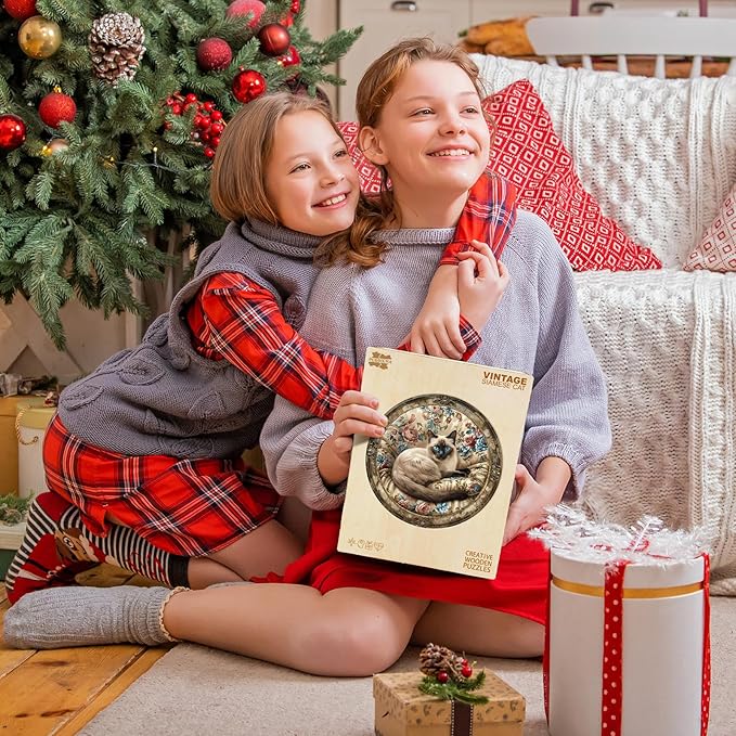 - Vintage Siamese Cat Wooden Puzzle: This wooden jigsaw puzzle takes inspiration from nature, featuring irregularly shaped animal pieces. The original hand-drawn designs not only provide a puzzle-solving experience but also serve as unique home décor