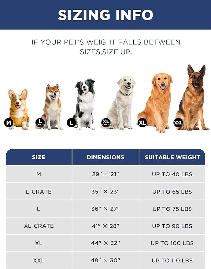 - Size Guide - XL size measures approximately 41"L x 28"W x 1.5"H, works great as extra large dog bed mats for dog up to 90 pounds