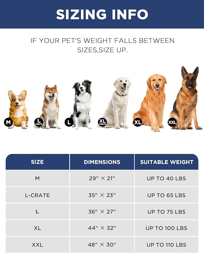 - Size Guide - L+ size measures approximately 36"L x 27"W x 1.5"H, works great as Large dog bed mats for dog up to 75 pounds