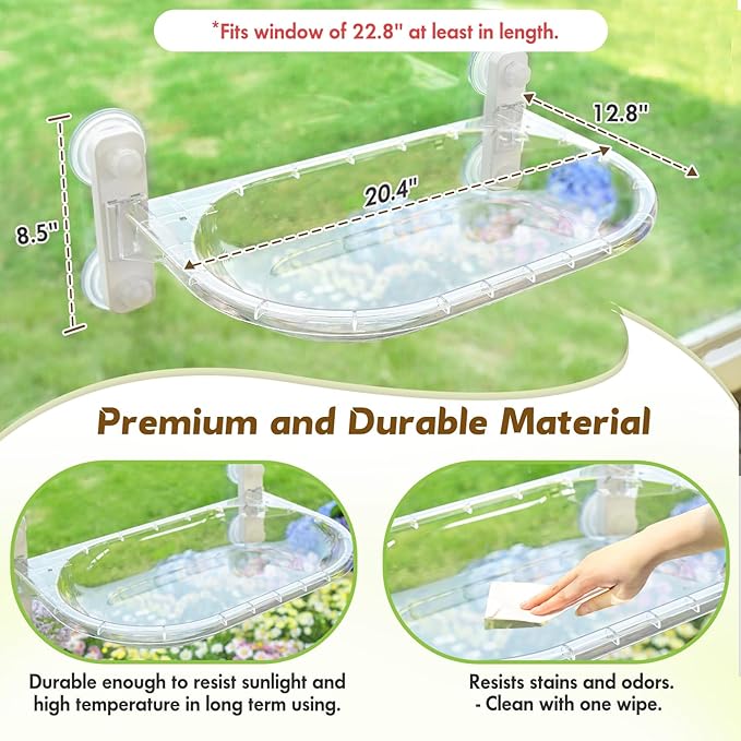 - Simple Daily Maintenance: The durable plastic material not only ensures long-lasting use but also resists stains and odors. Only simply wipe it down with a damp cloth, and it will restore to like-new condition with a simple wipe. Own this transparent cat window perch, daily maintenance is a breeze.