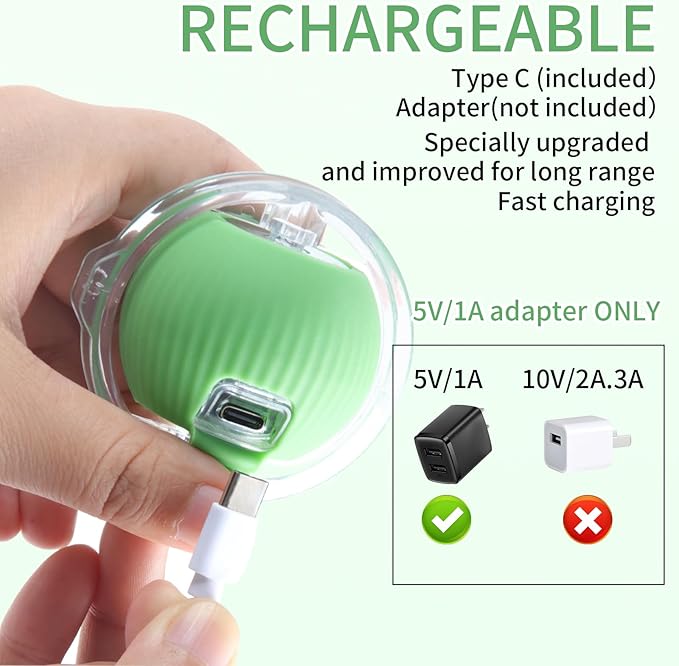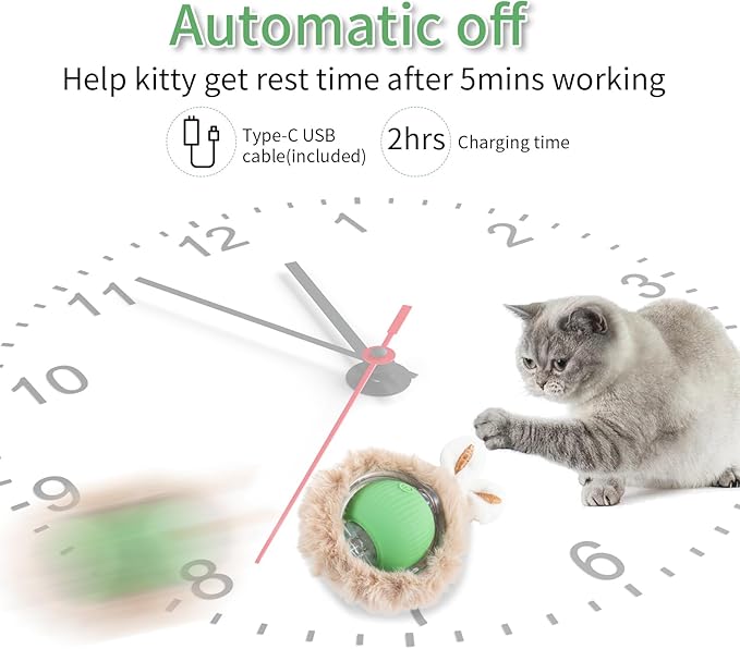- USB CHARGING CONVENIENT: This cat toy can be charged via USB, Fast charging and no need to change batteries is both eco-friendly and convenient, ensuring your pet has uninterrupted playtime. Comes with a C-cable that can easily be fully charged in less than half an hour!