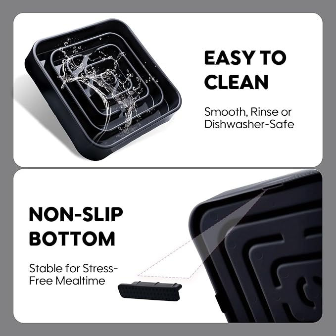 - 【Unique Square Maze Dog Bowl】Modern square shape with an intricate maze interior turns mealtime into a stimulating game; this large slow feeder dog bowls slows eating by up to 30% to reduce indigestion, choking and bloating risks for fast eaters. Not only does the bowl challenge your dog’s mind, but it also encourages healthier eating habits.