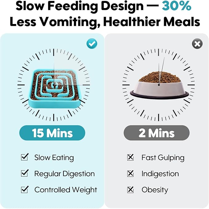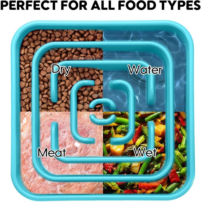- 【Unique Square Maze Dog Bowl】Modern square shape with an intricate maze interior turns mealtime into a stimulating game; this large slow feeder dog bowls slows eating by up to 30% to reduce indigestion, choking and bloating risks for fast eaters. Not only does the bowl challenge your dog’s mind, but it also encourages healthier eating habits.