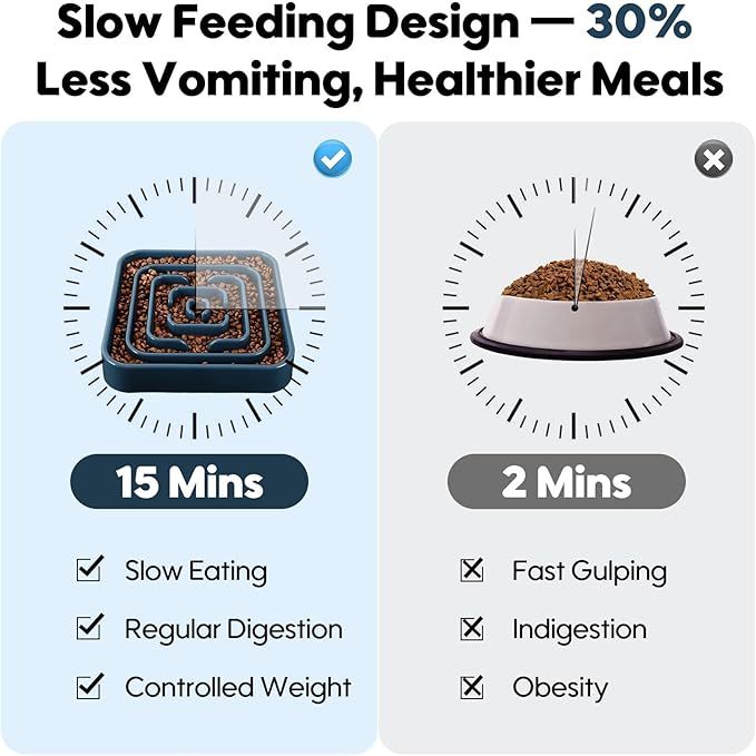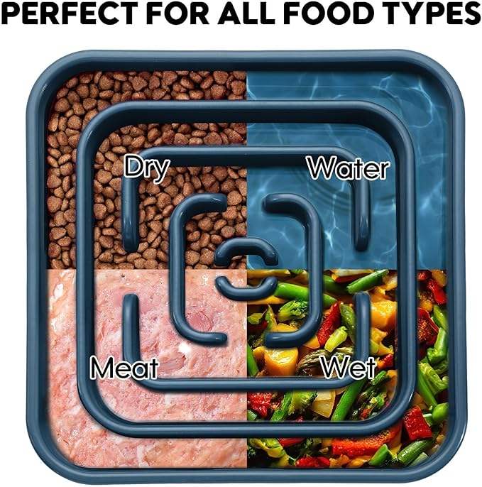 - 【Unique Square Maze Dog Bowl】Modern square shape with an intricate maze interior turns mealtime into a stimulating game; this large slow feeder dog bowls slows eating by up to 30% to reduce indigestion, choking and bloating risks for fast eaters. Not only does the bowl challenge your dog’s mind, but it also encourages healthier eating habits.