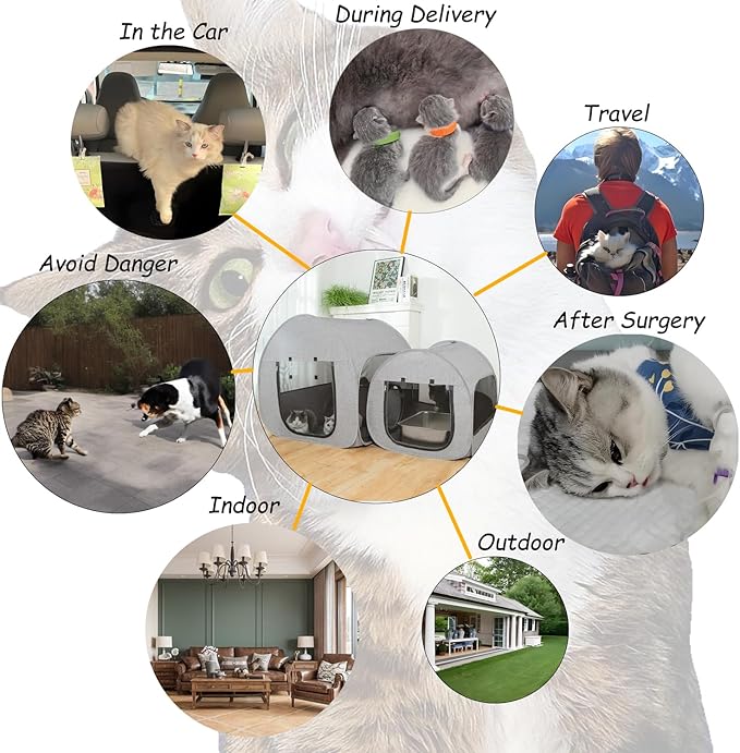 LUCKITTY Portable Cat Playpen, Delivery Room, Enclosure, Postoperative Recovery, House Design for Better Standing, Foldable Pet Tent for Indoor and Outdoor Use, Cat Houses & Condos Light Gray