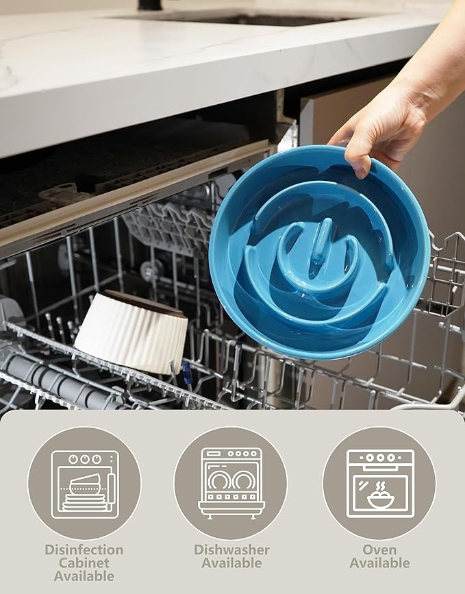 - 【Easy to Clean】 Dishwasher available—— Our ceramic slow feeder dog bowls are ideal for both dry and wet food, easy to clean and dishwasher safe.