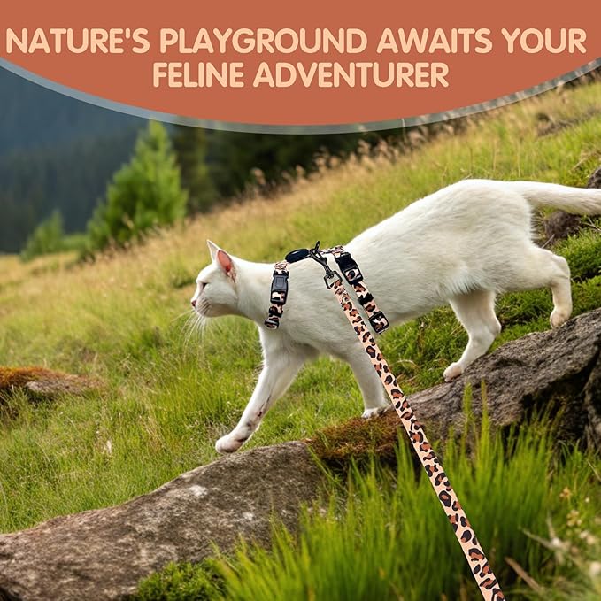- SOFT,LIGHTWEIGHT MATERIAL: Crafted from high-quality polyester webbing, this kitten harness and leash set is lightweight, breathable, and skin-friendly—ideal for daily wear, outdoor strolls, travel, or vet visits. The bold and fashionable khaki leopard print adds a stylish touch that makes your kitten stand out instantly
