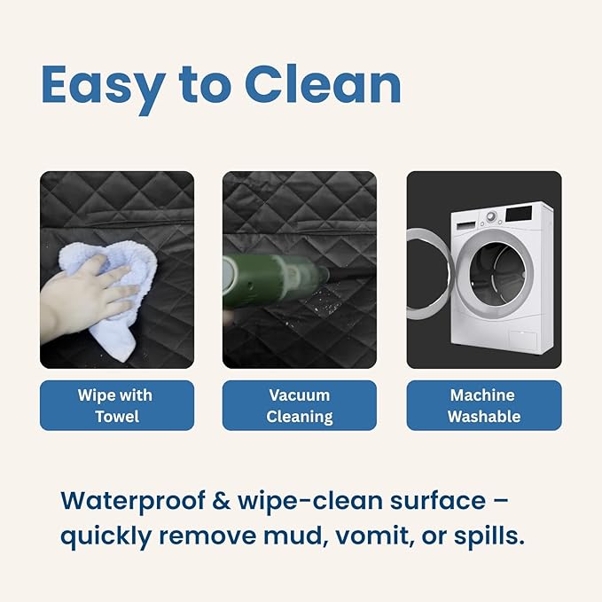 - Easy to Clean: The rear seat protector for dogs is machine washable, can also be rinsed with water or wiped with a damp cloth, saving time and energy after muddy adventures or hair removal season