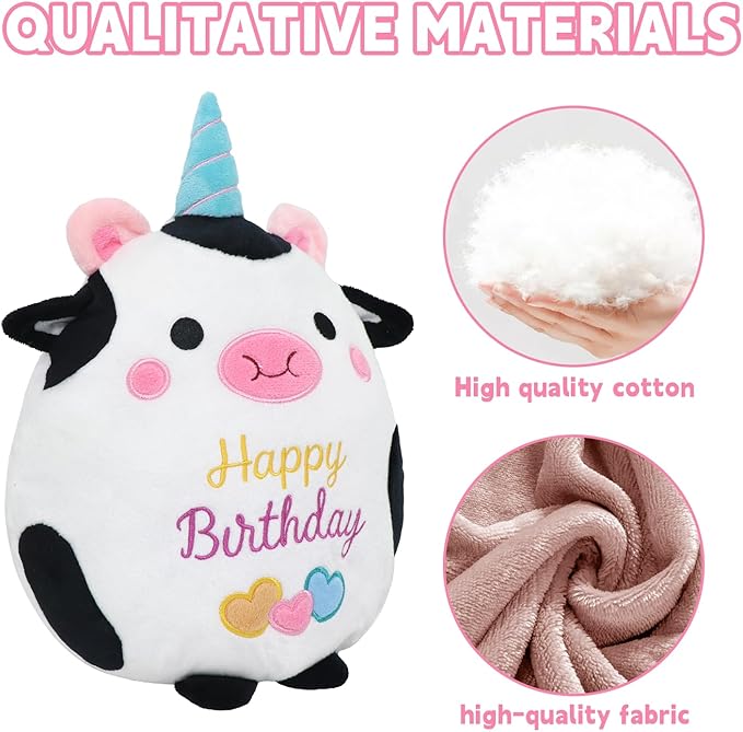 - 【Perfect Birthday Gift】This colorful "Happy Birthday" sign unicorn cow plush can decorate a birthday party or for family,children,friends,etc.A kawaii shape will bring them good luck and happiness.
