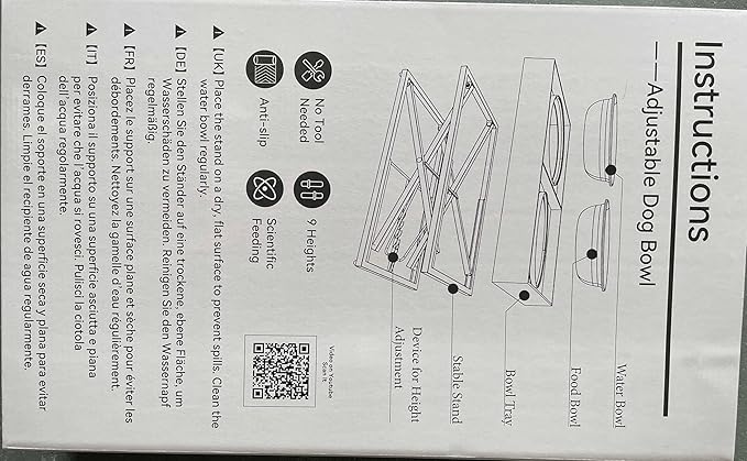 - Tilt Design and Foldable:This tilt angle designed for the position of the elevated food bowl helping improve swallowing comfort. In addition, the collapsible legs make it easy to pack and much space-saving, perfect for multi-dog homes or small apartments